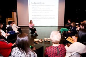 During the session, the therapist provides the patient with music therapy techniques, which allow the patient to be more active (i.e. by playing a musical instrument) or more receptive (i.e. when the therapist is doing guided meditation using the instruments).